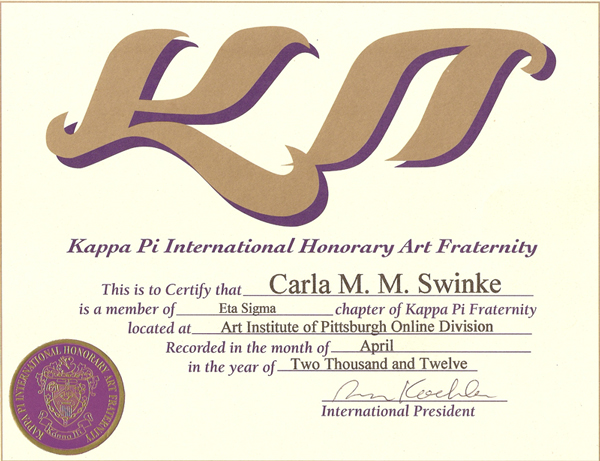 Every day I am expanding my artistic abilities by attending the Art Institute of Pittsburgh Online in both graphic arts as well as continuing to hone my skills in hand expressed art. I will be receiving my Associates in Graphic Design in March 2013. After obtaining my Associates I will further my education goals with a Bachelors Degree in Media Arts and Animation.
